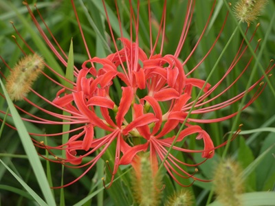 10月3日房総半島 鴨川市の大山千枚田、ヒガンバナ、白ヒガンバナとシジミチョウ(ウラナミシジミ)、5日に都内のOさんから送られた浜離宮のキバナコスモス。6日Nさんから送られたマリーゴールドとその葉を食べるコガネムシ(アオドウガネ)。13日にNさんから送られた皇居東御苑天守台、東京駅舎(丸の内側)と背後の八重洲側ビル群。20日にNさんから送られたダチョウ(茨城県石岡市ダチョウ王国)と青いアケビ。