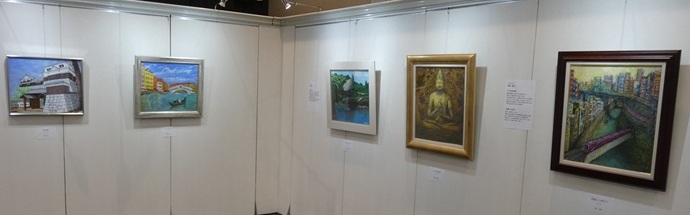 一口に絵画と言っても、画題は「大日如来坐像」、「雨のオンフルール」などと名前が付けられていて、描かれる対象は、静物、風景、人物、抽象画、想像上のものなど様々である。材料も油絵、アクリル、水彩、鉛筆(色鉛筆)、パステル、版画、水墨など多様だ。長年絵画を愛して制作を続けて来られたのだろう。それぞれの作品には味わい(個性)が感じられる。油絵などは、一つの作品を仕上げるのに何か月もかかることもあるらしい。その間の作者の気持ちが作品の個性として表れてくるのだろうか。展示全体の印象は、美しさや驚きを強調する装飾的なものというよりも、暖かさ、優しさ、懐かしさを感じさせる作品が多かった。私は見ていて安らぎを覚えた。案内して下さったMさんに感謝している。